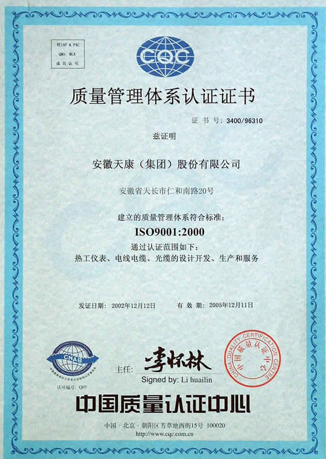 下一條:“天儀”牌工業(yè)用鉑熱電阻于97年被安徽省技術(shù)監(jiān)督局授予質(zhì)量免檢產(chǎn)品 [向上]