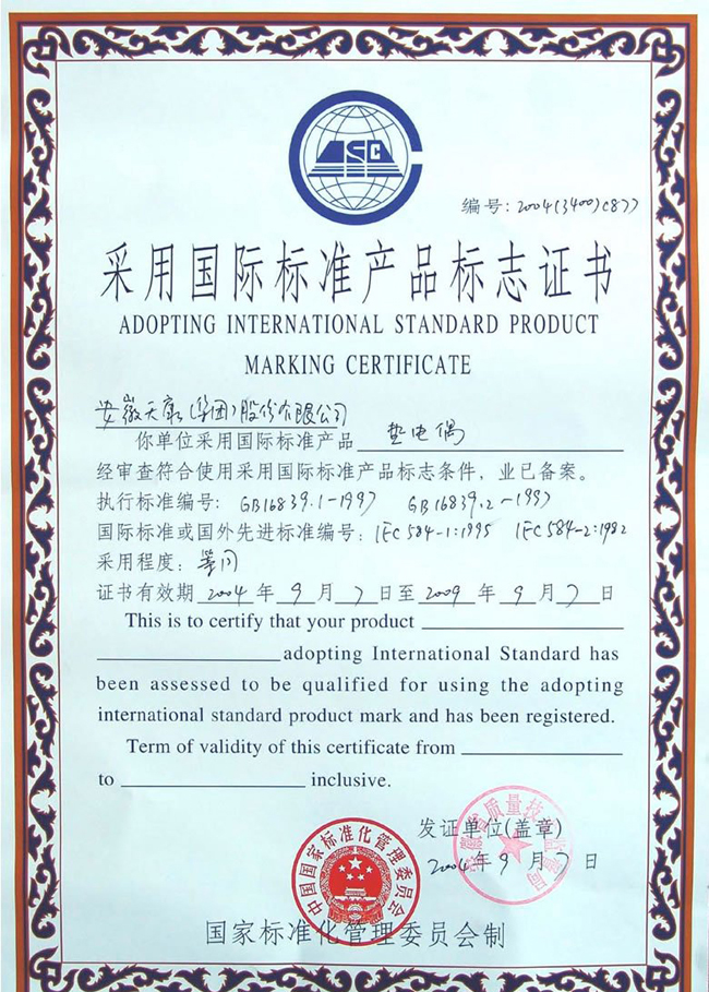 熱電隅國標(biāo)證書